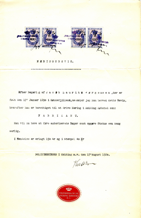 12.06.1918 Optages som medlem af erhvervsnetværket Kolding Fodsportsforening af 1915 og opnår dermed anerkendelse i Koldings førende erhvervsnetværk