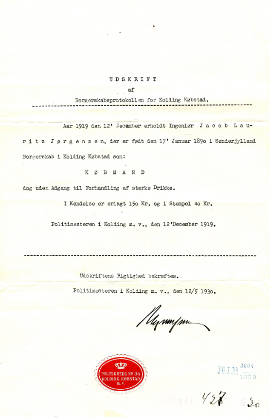 17.05.1919 Stifter og daglig leder af Nordisk Solar Compagni, Kolding, der beskæftiger sig med salg af elektricitetsmålere og beslægtet materiel
