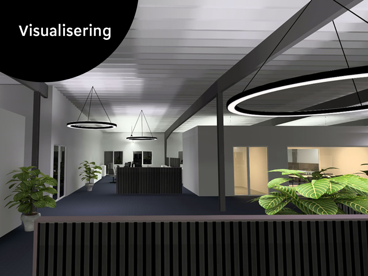 For at sikre klarhed over hvordan den endelige løsning ville komme til at se ud, udarbejdede vi en elektronisk visualisering af dele af lokalerne – se billederne nederst på siden.