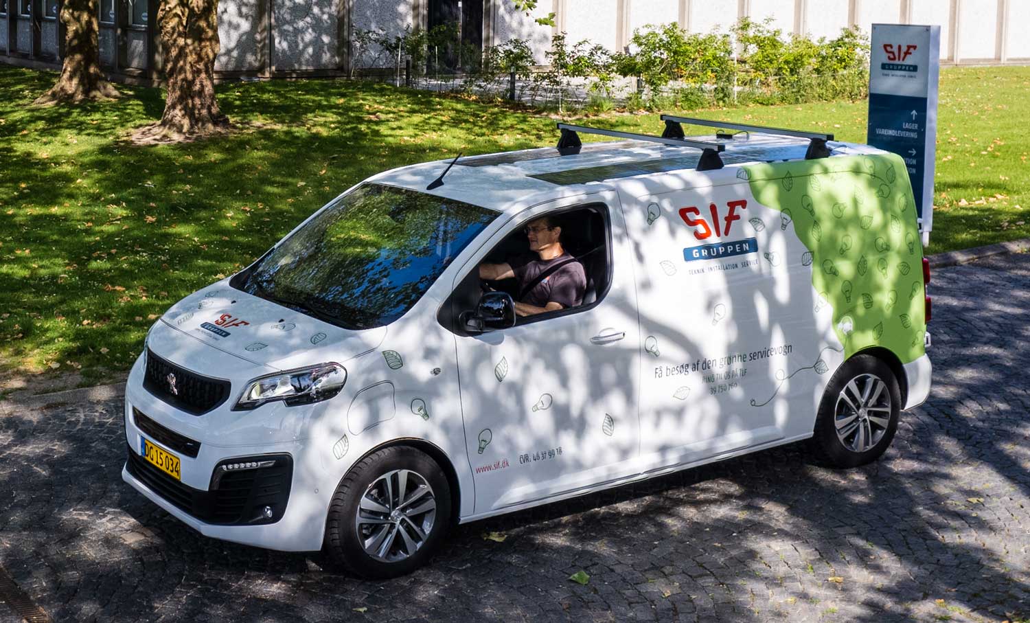 For bedst muligt at kunne hjælpe deres kunder med grøn omstilling har SIF Gruppen i samarbejde med Solar og Schneider Electric udviklet den Grønne Servicevogn. Bilen er dokumenteret grøn fra inderst til yderst: den er 100% eldrevet, har solceller på taget og energieffektive og miljøvenlige produkter i bilen.